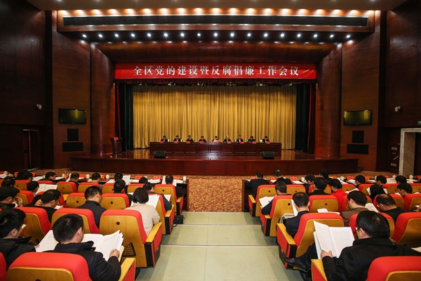 郭玉生指出,要立足新時代,切實增強推進黨的建設和全面從嚴治黨的自信自覺。過去的一年,全區各級黨組織以迎接十九大召開、學習貫徹十九大精神為工作主線,強宣傳、造氛圍,強隊伍、提素質,強作風、樹形象,強聯合、聚合力,講政治旗幟鮮明、謀大局自覺主動、抓落實更加有力、促創新積極有效,辦成了一批大事、要事、實事,形成了黨建工作與經濟建設良性互動、相得益彰的生動局面,奠定了新時代全區黨的建設和全面從嚴治黨工作高質量發展的基礎。新的一年,全區各級黨組織要緊跟時代步伐、瞄準更高目標,嚴格落實黨要管黨、從嚴治黨要求,不斷提升黨的建設和全面從嚴治黨工作科學化水平。