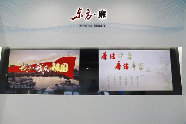 令人眼前一亮的是文化建設(shè)功能區(qū),共分為“紅、智、廉、諧、賢”等五個(gè)板塊,每個(gè)板塊都采用視頻展示的方式,系統(tǒng)化、集成化推出集團(tuán)高質(zhì)量轉(zhuǎn)型發(fā)展的建設(shè)成果。“紅”即代表發(fā)展成就、“智”即代表轉(zhuǎn)型之路、“廉”即代表黨建和廉政建設(shè)、“諧”即代表企業(yè)文化建設(shè)、“賢”即代表東方標(biāo)兵。