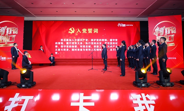 學習永無止境,時刻不忘初心。入黨誓詞,是黨員對黨和人民作出的莊嚴承諾。一代又一代中國共產黨人,面對鮮紅黨旗,右手握拳,一字一句許下錚錚誓言。現場,東方集團黨委書記、董事長張振國帶領黨員們重溫了入黨誓詞。