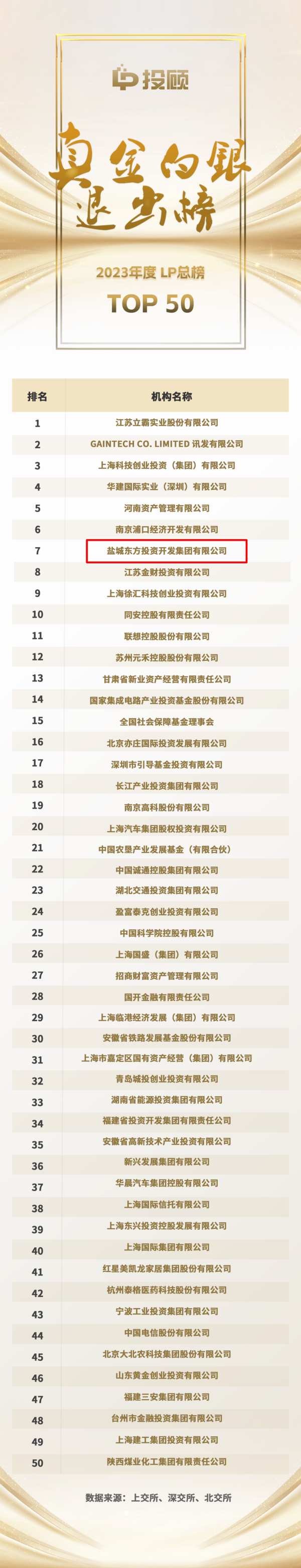 7月31日,LP投顧重磅發布《VC/PE機構A股退出報告2023》,鹽城東方集團再度榮登“GP/LP真金白銀退出榜”。榮獲備受業界關注的重要榜單,充分體現了業界和權威機構對集團立足創新前沿、加快推動更多優質生產力萌芽壯大的高度認可。
