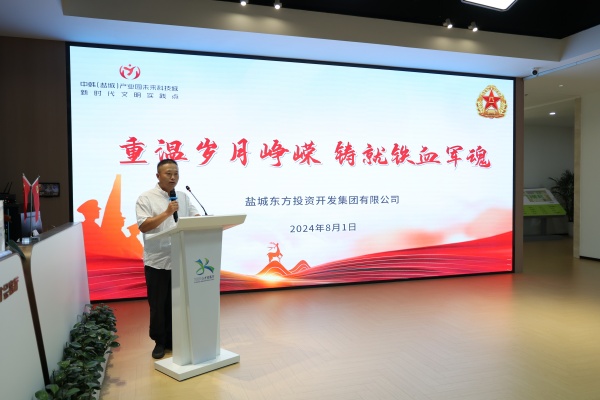 為紀念中國人民解放軍建軍97周年,大力弘揚新時代愛軍擁軍的優良傳統,著力營造尊軍崇軍的濃厚氛圍。鹽城東方集團于8月1日下午在中韓(鹽城)產業園未來科技城新時代文明實踐點成功舉辦“重溫歲月崢嶸 鑄就鐵血軍魂”慶祝“八一”建軍節主題文明實踐活動。集團20余名退伍軍人參加。