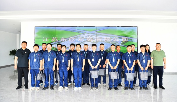 圖為吳將與東欣水務公司工作人員合影留念
