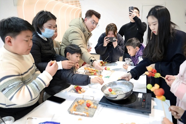 “寒假糖趣工坊,糖葫蘆歡樂天地”活動中,家長與孩子攜手歡聚一“糖”,利用山楂、橘子、葡萄等多種水果,共同串起幸福的滋味,制作獨一無二的冰糖葫蘆,在新年度過一段溫馨甜蜜的親子時光。