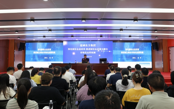 為深入貫徹落實黨中央、國務院及省委省政府關于深化國有企業改革的系列決策部署,準確理解和把握如何高質量完成國企改革深化提升行動,9月12日下午,鹽城東方集團在未來科技城A1A2棟4樓中會議室舉辦了“深化國有企業改革 推進國有企業建立健全市場化運營機制”專題培訓。集團各部門及子公司員工共120余人參加。