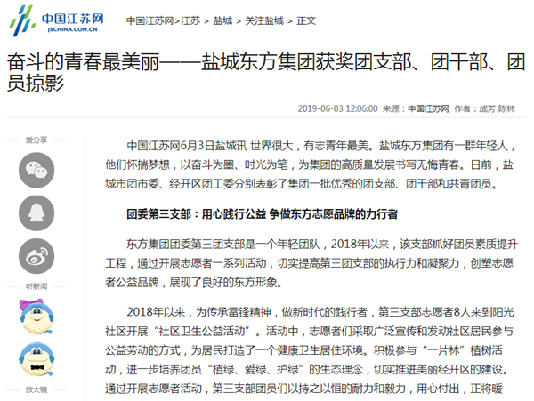 東方集團(tuán)團(tuán)委第三支部榮獲“2018年度區(qū)五四青年團(tuán)支部(總支)”。