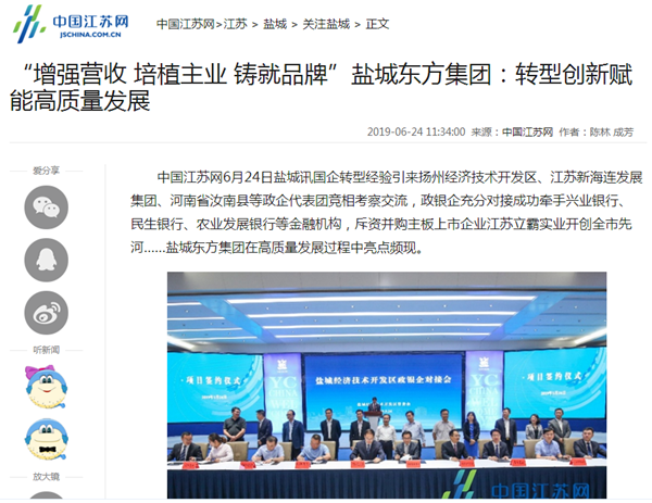 國企轉型經驗引來揚州經濟技術開發區、江蘇新海連發展集團、河南省汝南縣等政企代表團競相考察交流,政銀企充分對接成功牽手興業銀行、民生銀行、農業發展銀行等金融機構,斥資并購主板上市企業江蘇立霸實業開創全市先河……鹽城東方集團在高質量發展過程中亮點頻現。