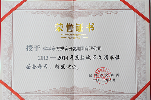 集團(tuán)榮獲2013-2014年度鹽城市文明單位稱號(hào)