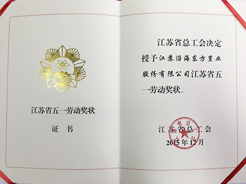 核心子公司江蘇沿海東方置業(yè)股份有限公司榮獲“江蘇省五一勞動(dòng)獎(jiǎng)狀”