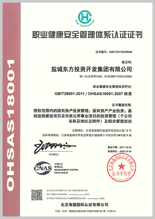 集團(tuán)通過質(zhì)量管理體系ISO9001、環(huán)境管理體系ISO14001、職業(yè)健康安全管理體系OHSAS18001“三標(biāo)一體化”認(rèn)證