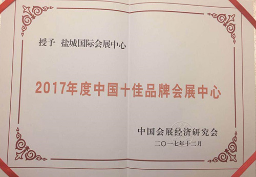 鹽城國際會(huì)展中心獲得“2017年度中國十佳品牌會(huì)展中心”榮譽(yù)稱號(hào)