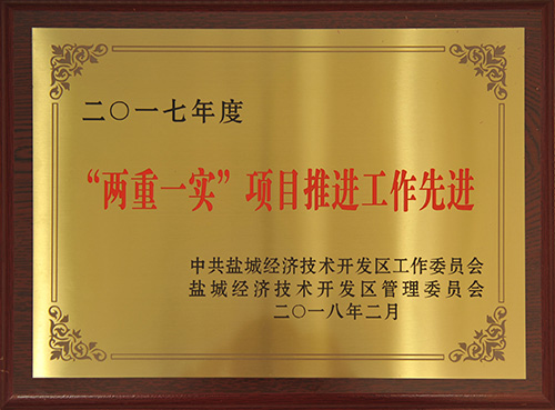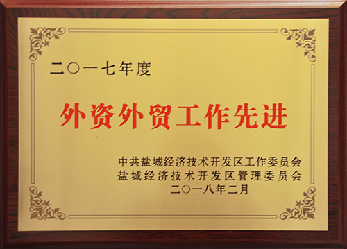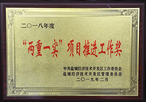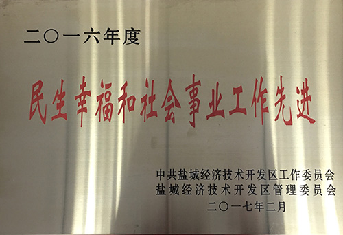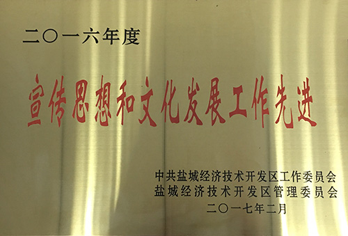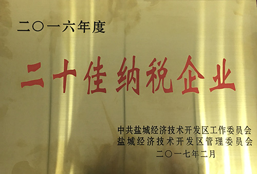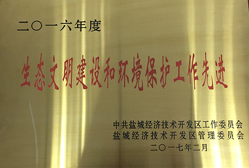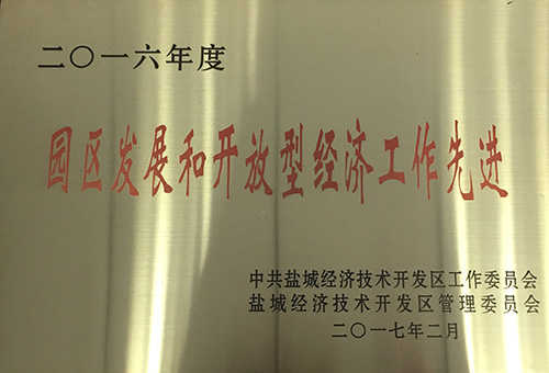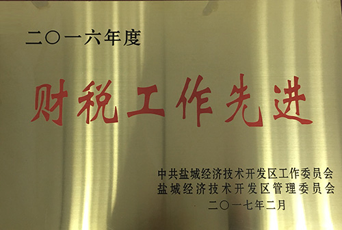 榮獲2016年度鹽城經(jīng)濟(jì)技術(shù)開發(fā)區(qū)二十佳納稅企業(yè)、項(xiàng)目推進(jìn)工作先進(jìn)集體、園區(qū)發(fā)展和開放型經(jīng)濟(jì)工作先進(jìn)集體、民生幸福和社會(huì)事業(yè)先進(jìn)工作集體、生態(tài)文明建設(shè)和環(huán)境保護(hù)工作先進(jìn)集體、宣傳思想和文化發(fā)展工作先進(jìn)集體、財(cái)稅工作先進(jìn)集體七項(xiàng)集體表彰