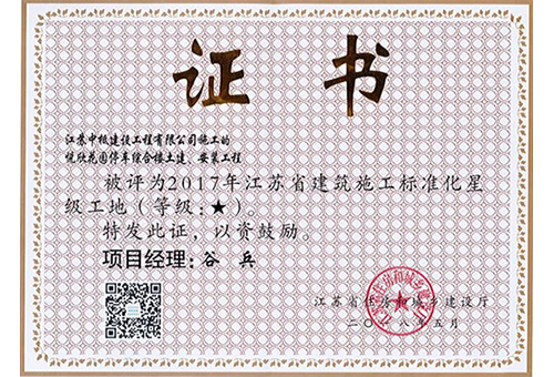 悅欣花園停車綜合樓土建、安裝工程榮獲“2017年度江蘇省建筑施工標(biāo)準(zhǔn)化星級(jí)工地”稱號(hào)