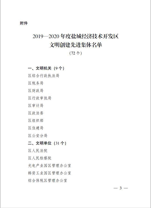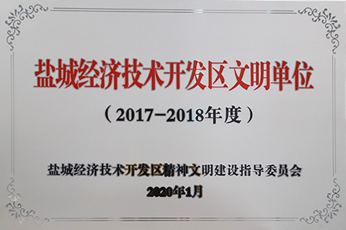 榮獲2017-2018年度鹽城經(jīng)濟(jì)技術(shù)開發(fā)區(qū)文明單位。