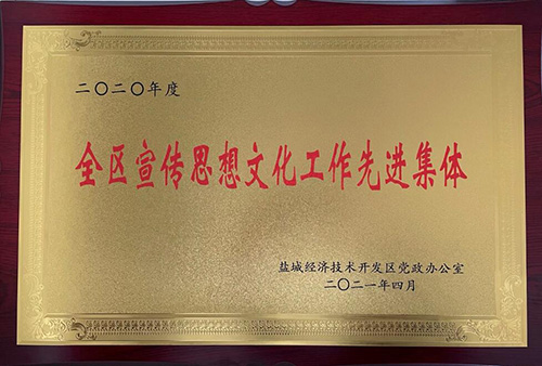 集團(tuán)榮獲鹽城經(jīng)濟(jì)技術(shù)開發(fā)區(qū)黨政辦公室頒發(fā)的2020年度“全區(qū)宣傳思想文化工作先進(jìn)集體”獎(jiǎng)項(xiàng)。