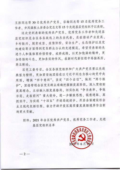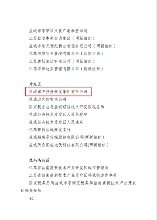 東方建設(shè)公司李青峰同志、東方地產(chǎn)公司李春成同志獲得2021年全區(qū)優(yōu)秀共產(chǎn)黨員榮譽(yù);鹽城東方投資開發(fā)集團(tuán)有限公司第二黨支部獲得2021年全區(qū)先進(jìn)基層黨組織榮譽(yù)。