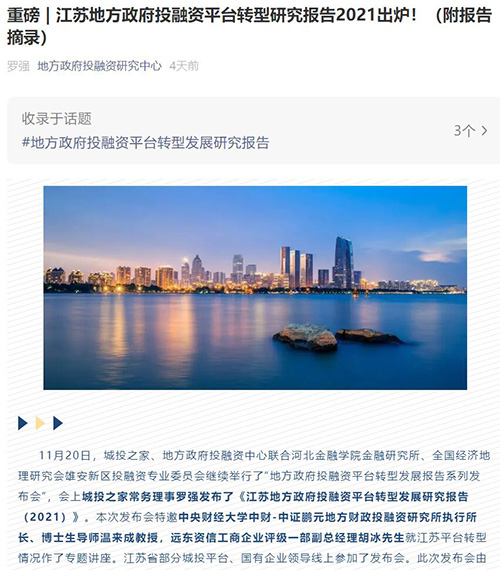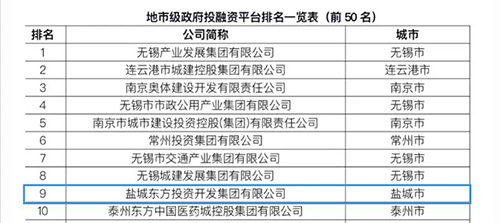 集團(tuán)轉(zhuǎn)型發(fā)展業(yè)績位列江蘇省地級(jí)市政府融資平臺(tái)榜單第九位,成為鹽城市唯一一家躋身該榜單前十的國企。