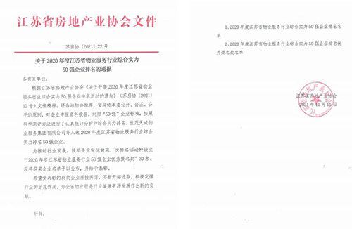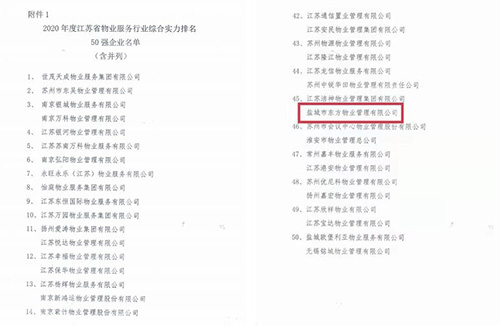 東方物業(yè)公司成功躋身“2020年度江蘇省物業(yè)服務(wù)行業(yè)綜合實(shí)力50強(qiáng)企業(yè)”榜單。