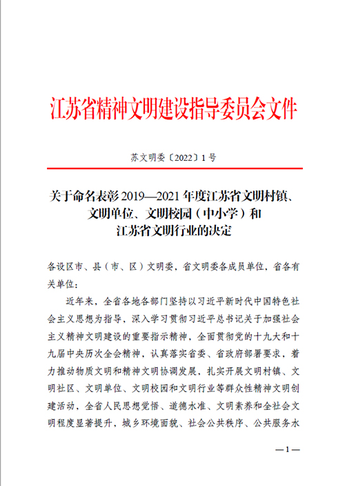鹽城東方集團(tuán)獲得“2019—2021年度江蘇省文明單位”榮譽(yù)稱號(hào)。