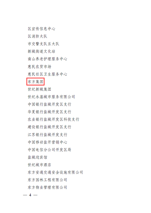 鹽城東方集團(tuán)獲得“2019—2020年度鹽城經(jīng)濟(jì)技術(shù)開發(fā)區(qū)文明創(chuàng)建先進(jìn)集體”榮譽(yù)稱號(hào)。