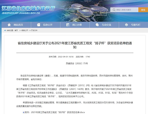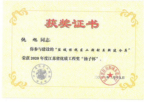 鹽城綜保區(qū)二期封關(guān)新建倉庫榮獲2020年度江蘇省優(yōu)質(zhì)工程“揚(yáng)子杯”。
